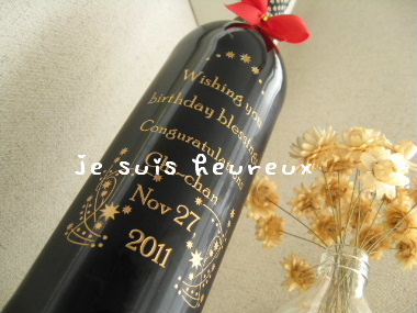 ボトルに手彫りのエッチングでメッセージがぁ~