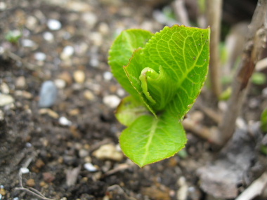 放置状態の庭で新しい芽が次々に見え始めていました。